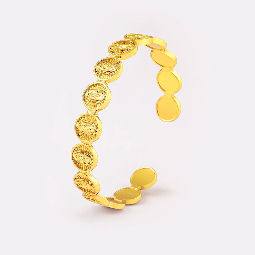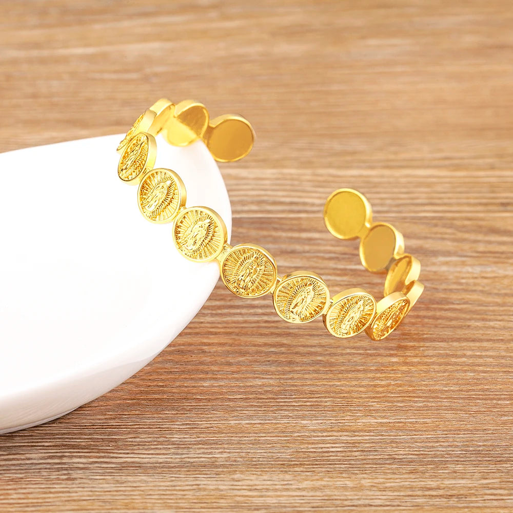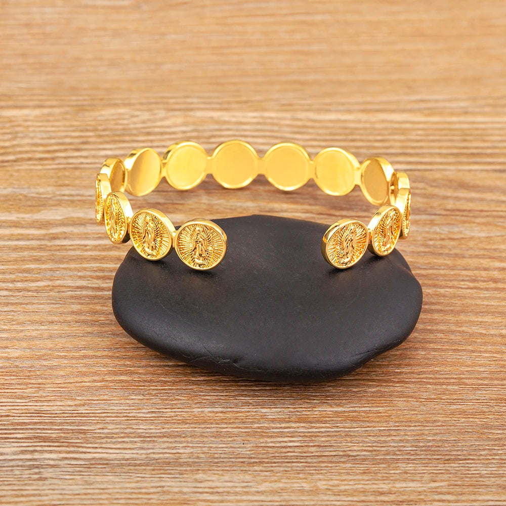 Nidin Klassischer Armreif mit runder Jesus-Christus-Medaille, vergoldet, Armreif mit Jungfrau Maria, für Damen und Herren, verstellbar, Schmuck, Party-Geschenk