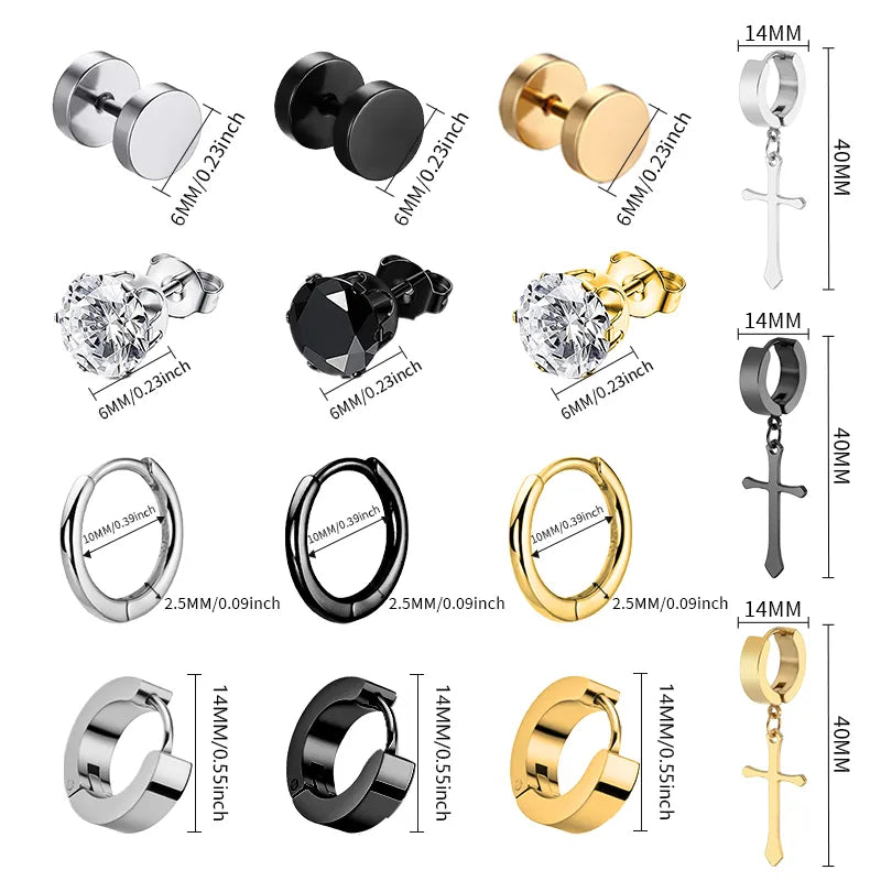 Gotische Kreuz-Ohrstecker aus Edelstahl