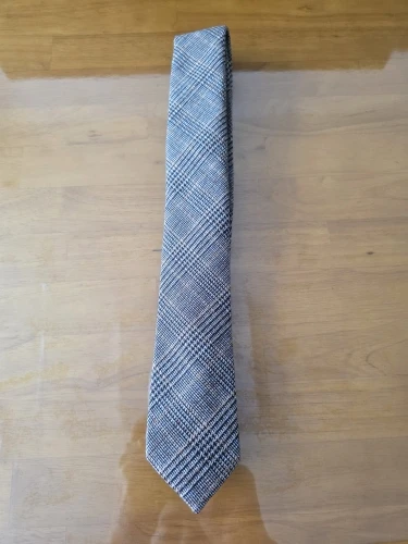 Schmale Herrenkrawatte aus grau-schwarz karierter Baumwolle