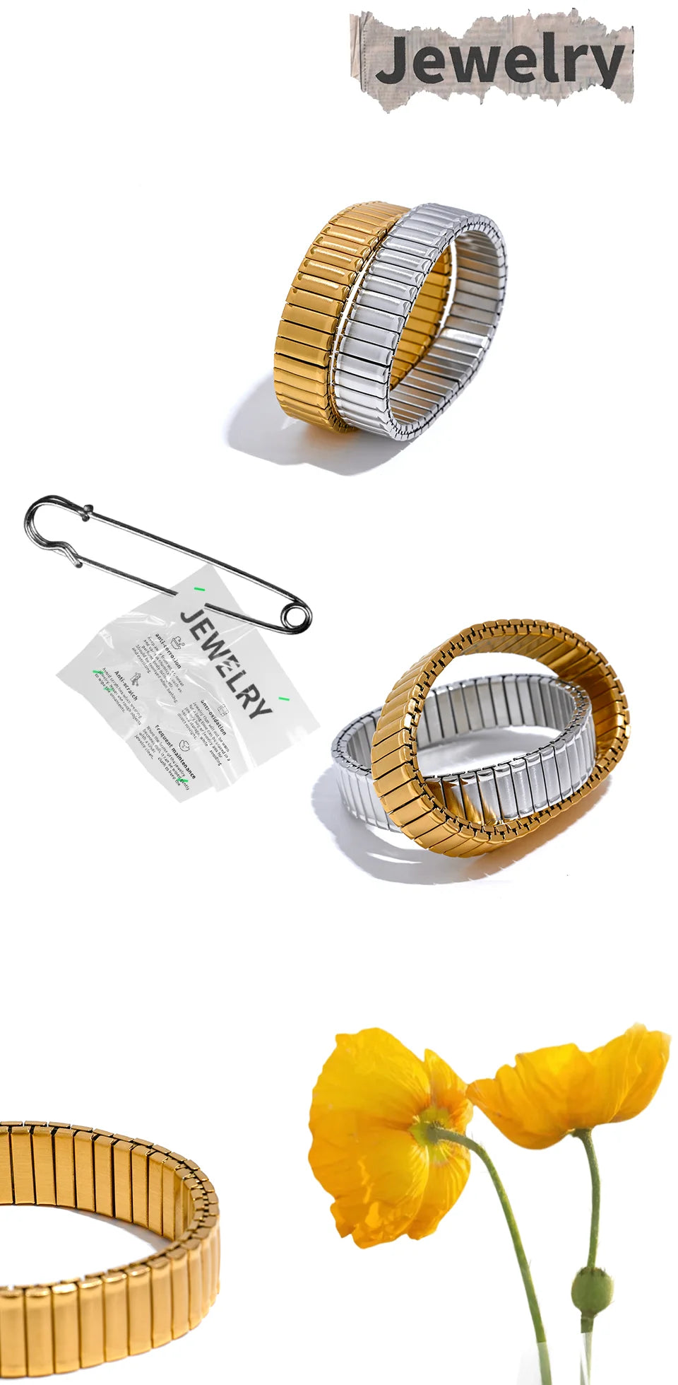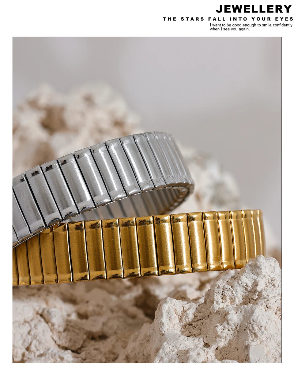 Handgefertigter Armreif mit elastischen Goldperlen für Damen