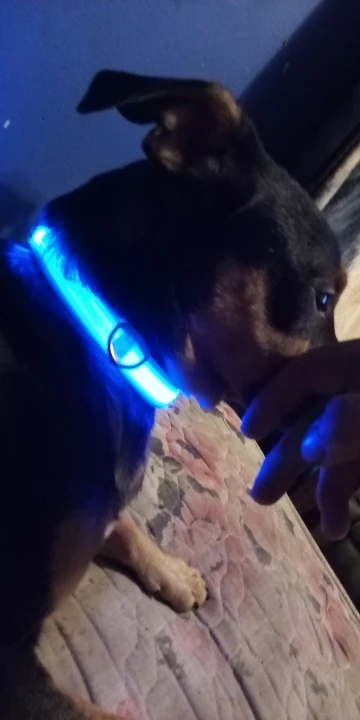 Ciara Hickle Cute collar i love the light up feature which works perfectly. I did have to sew the collar to it's self to keep it from coming undone where the strap is sized just a heads up. Other than that it works fine. I don't actually put a leash on it i use a harness and use the collar to warm drivers there is a dog and to be careful.