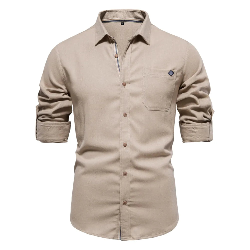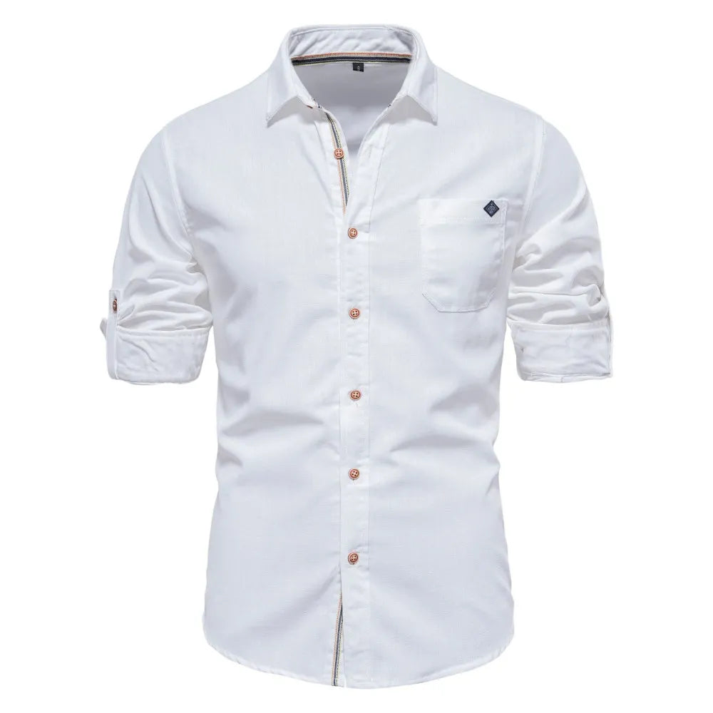 100% Baumwolle Social Herrenhemden Einfarbige Langarmhemden mit einer Tasche für Männer Umlegekragenbluse Frühlingsmänner