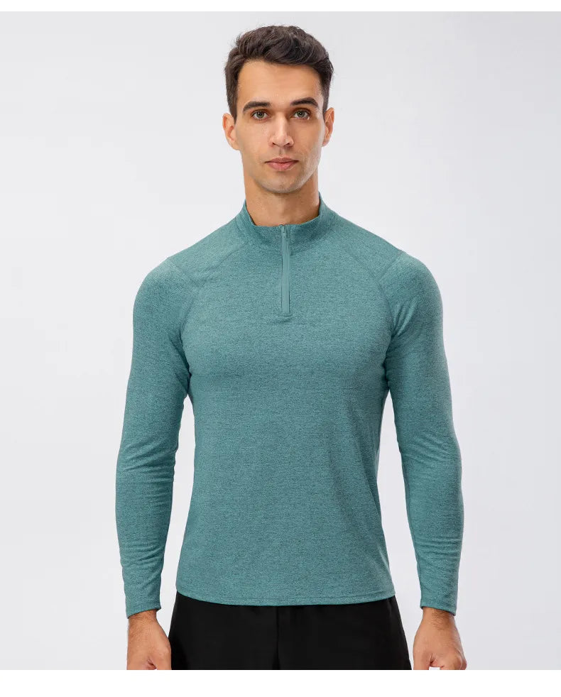 Herren-Herbst-Fitness-Langarm-Schnelltrocken-Laufoberteile mit halbem Reißverschluss und schmaler Passform, Trainings-Sweatshirt, Baselayer-Unterhemden