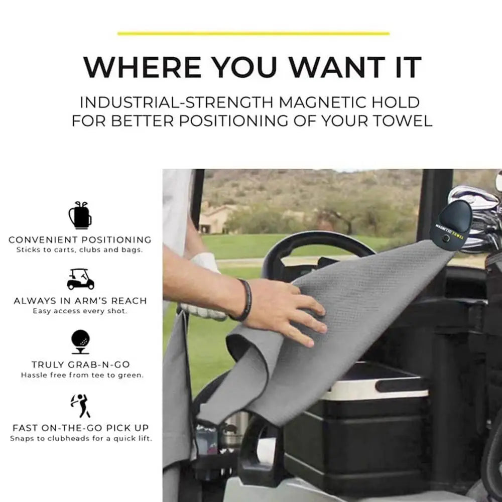 3. 【Bietet Ihnen Komfort】 Der leistungsstarke Magnet bietet großen Komfort, sodass das Magnet-Golfhandtuch einfach an Ihrem Golfwagen, Ihren Golfschlägern oder anderen bequem platzierten Metallgegenständen befestigt werden kann.