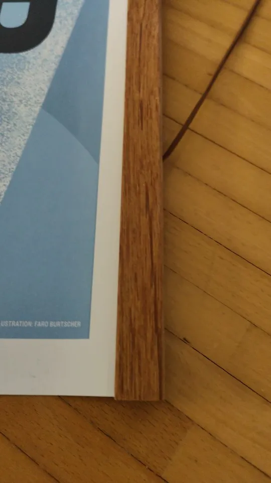 I am very satisfied with this poster holder. The wood looks nice and it gives a high-quality impression. The magnets have a good strength that holds the poster well. The package arrived quickly and was well packed.
