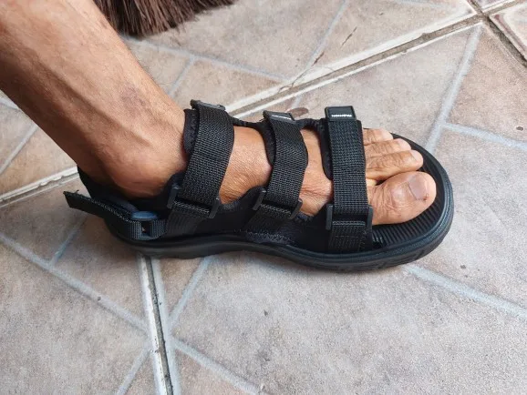 Comfortable, looks sturdy. The clasps allow you to adjust a comfortable position for your foot. The soles are springy, let's see how long they last.