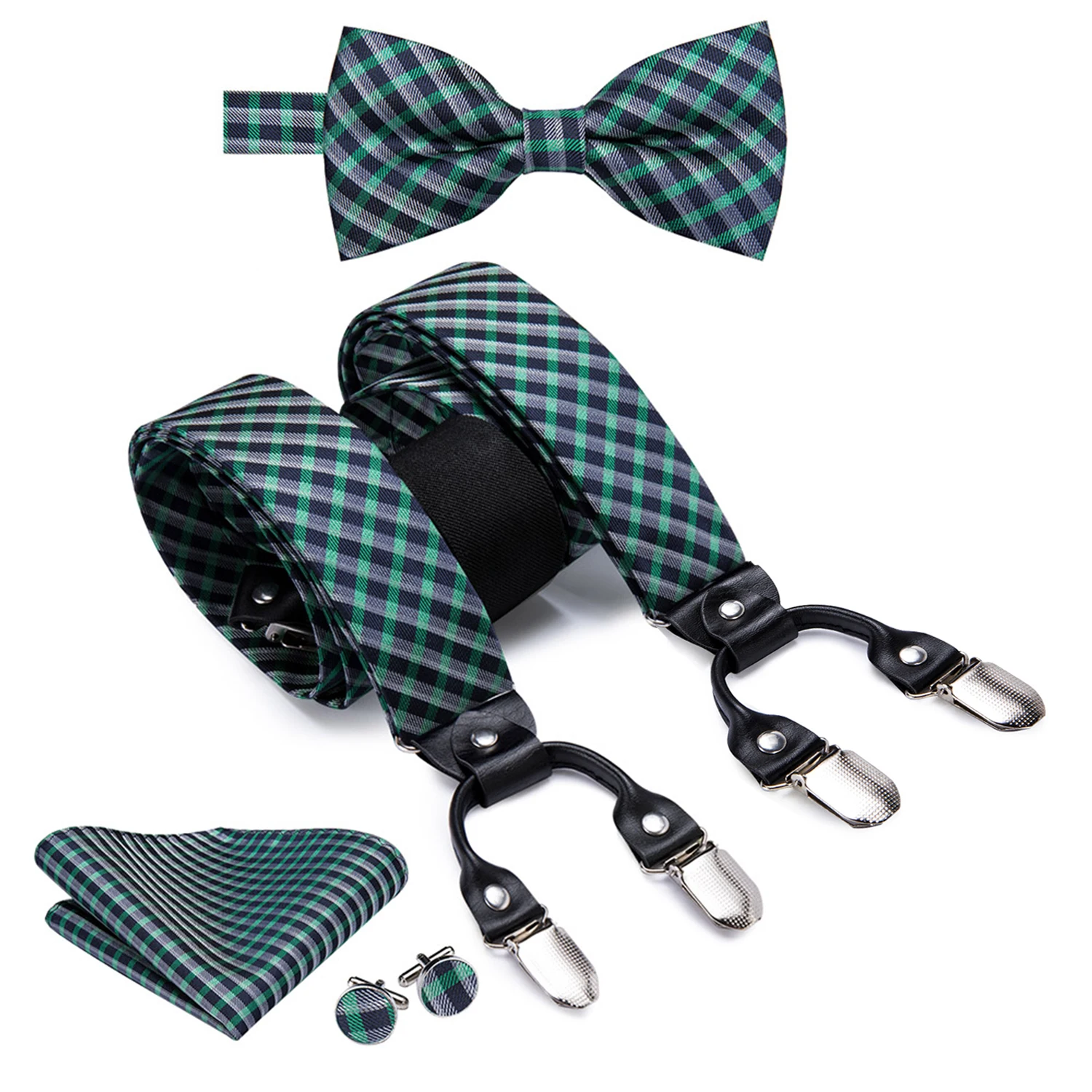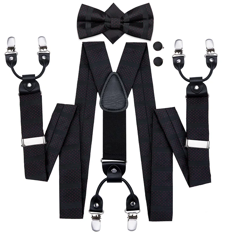Verkaufsartikel: Hosenträger-Fliege-Einstecktuch-Manschettenknöpfe-Set für Herren