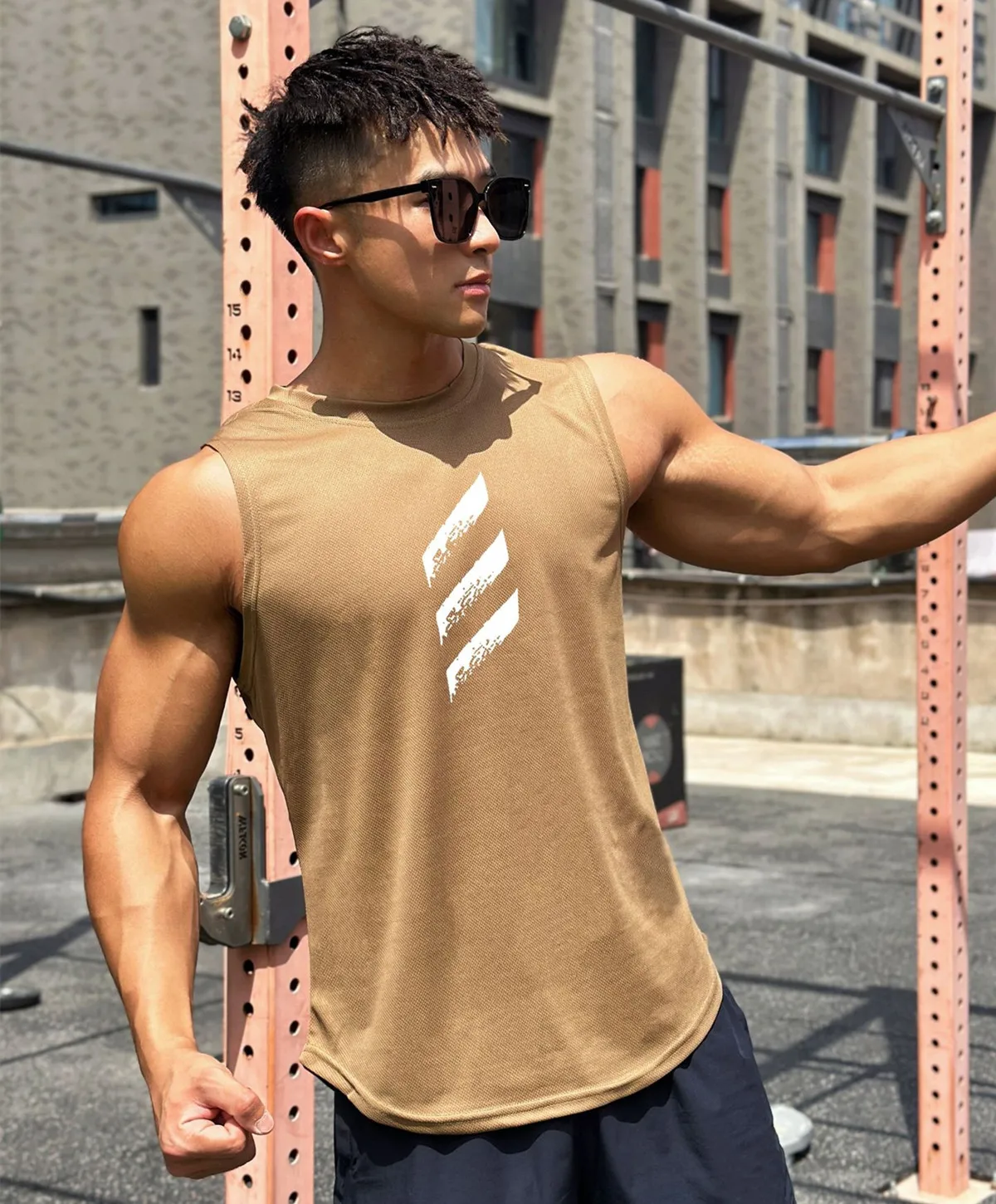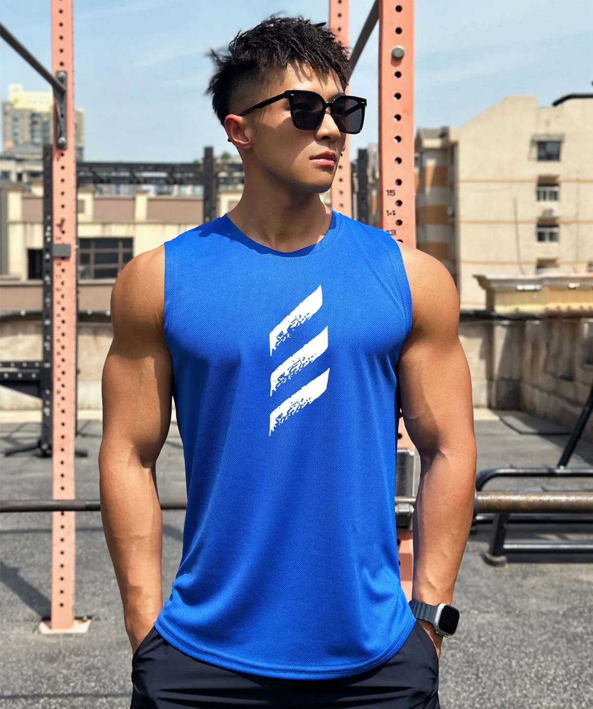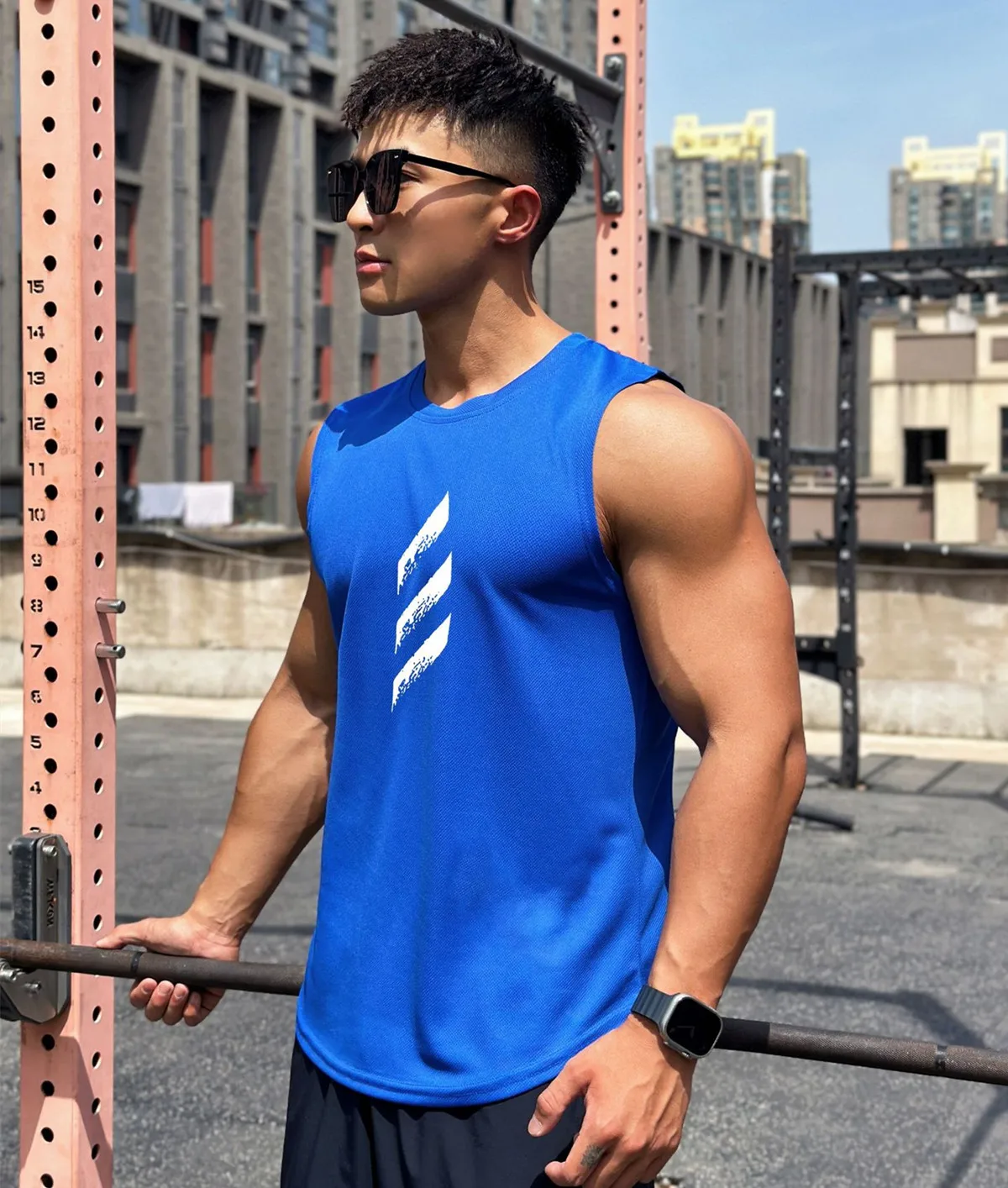 Ärmelloses Herren-Weste-Oberteil aus Netzstoff mit Rundhalsausschnitt