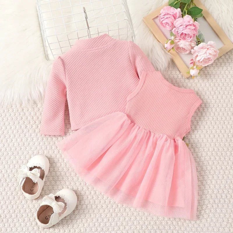 Monate Baby Mädchen Kleid Geburtstagsgeschenk rosa Blütenblatt Hosenträger Mantel Set