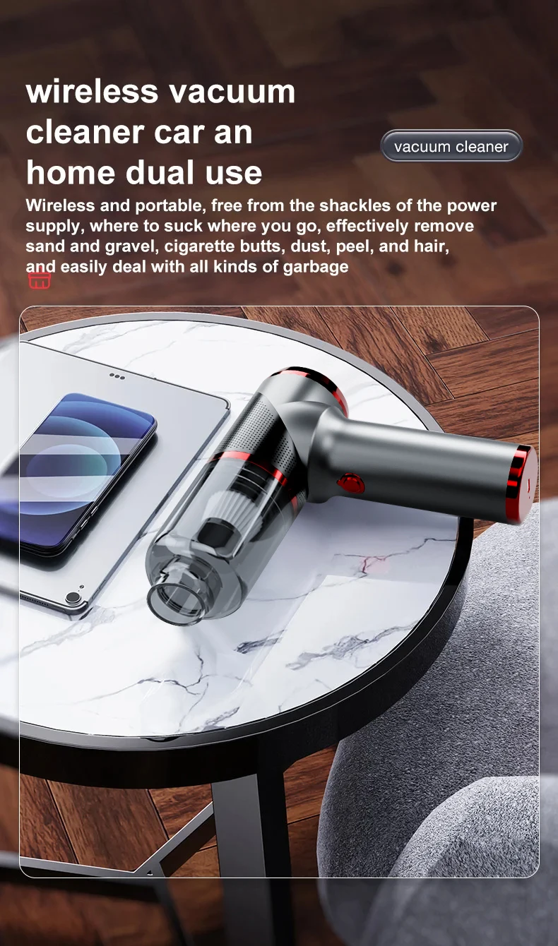 Leistungsstarker kabelloser Mini-Autostaubsauger – Handstaubsauger fürs Auto/2-in-1-Staubsauger für Zuhause