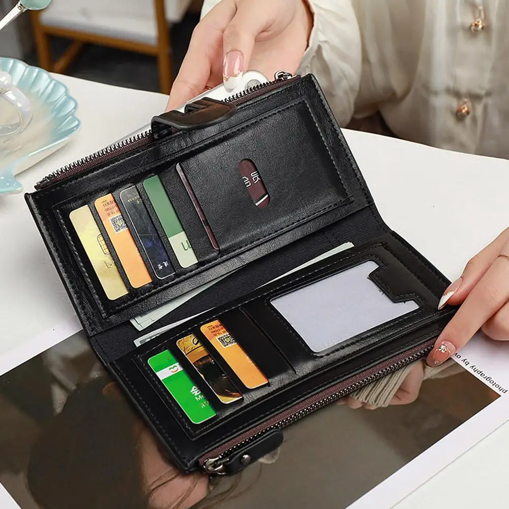 Lange Geldbörse aus PU-Leder für Damen – Clutch mit mehreren Kartenfächern