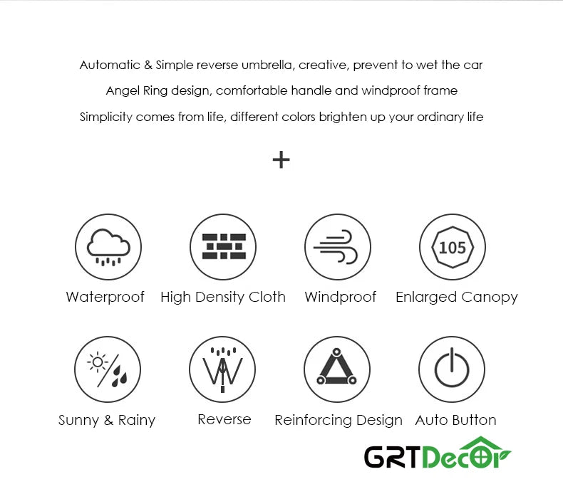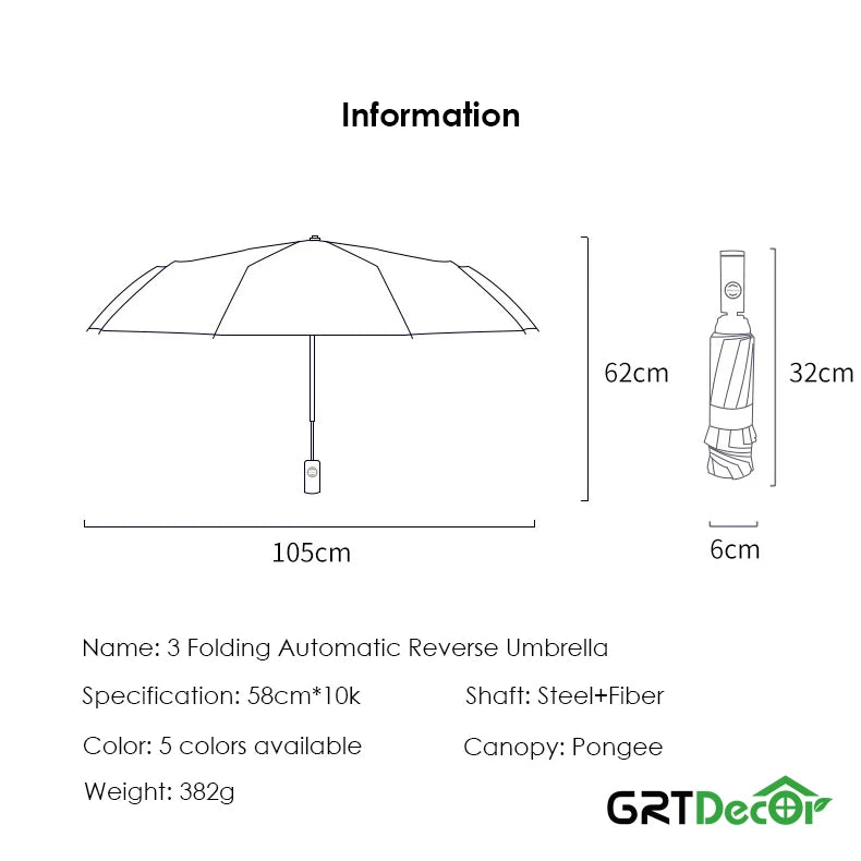 - Funktion: Sonnen- und Regenschirm, umgekehrte Regenschirme, faltbar