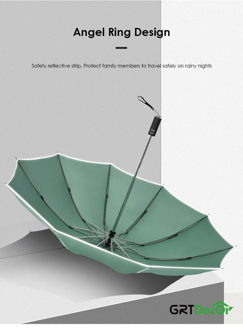 Reflektierendes, winddichtes 10-Rippen-Regenschirmset mit Streifen