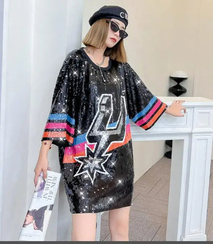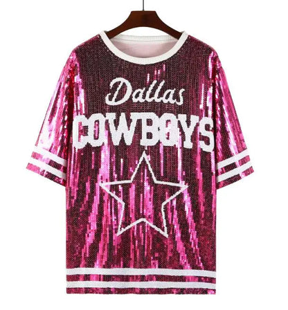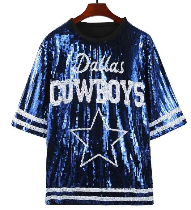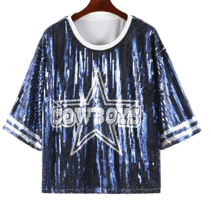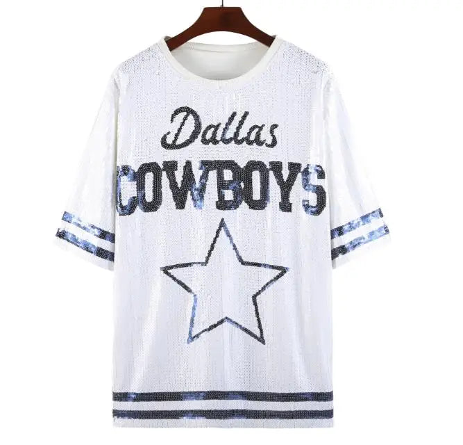 2023 neue Cowboy Baseball Fußball Spiel Weibliche Tops Pailletten Frauen Jersey Kleid
