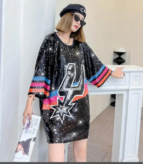 Pailletten-Cowboy-Fußball-Trikotkleid für Damen