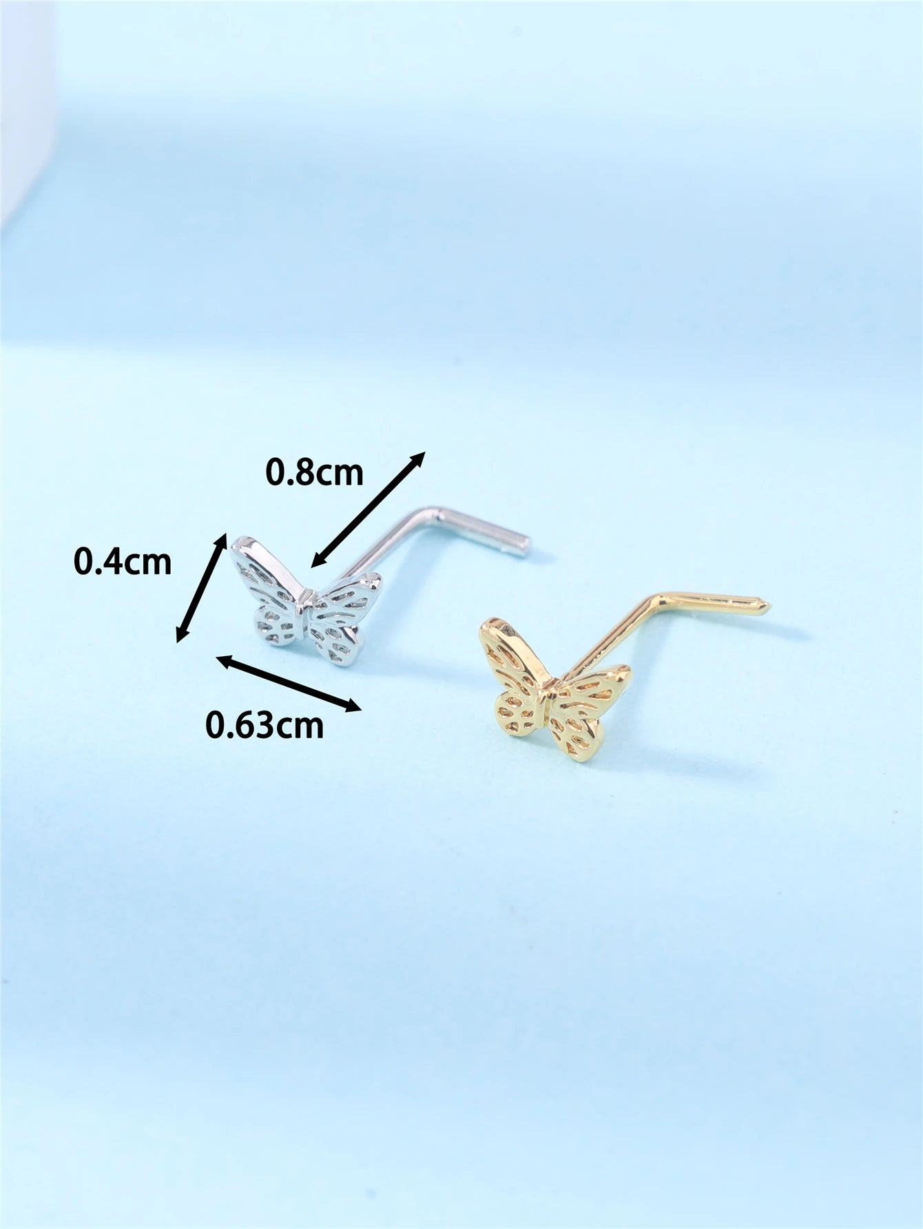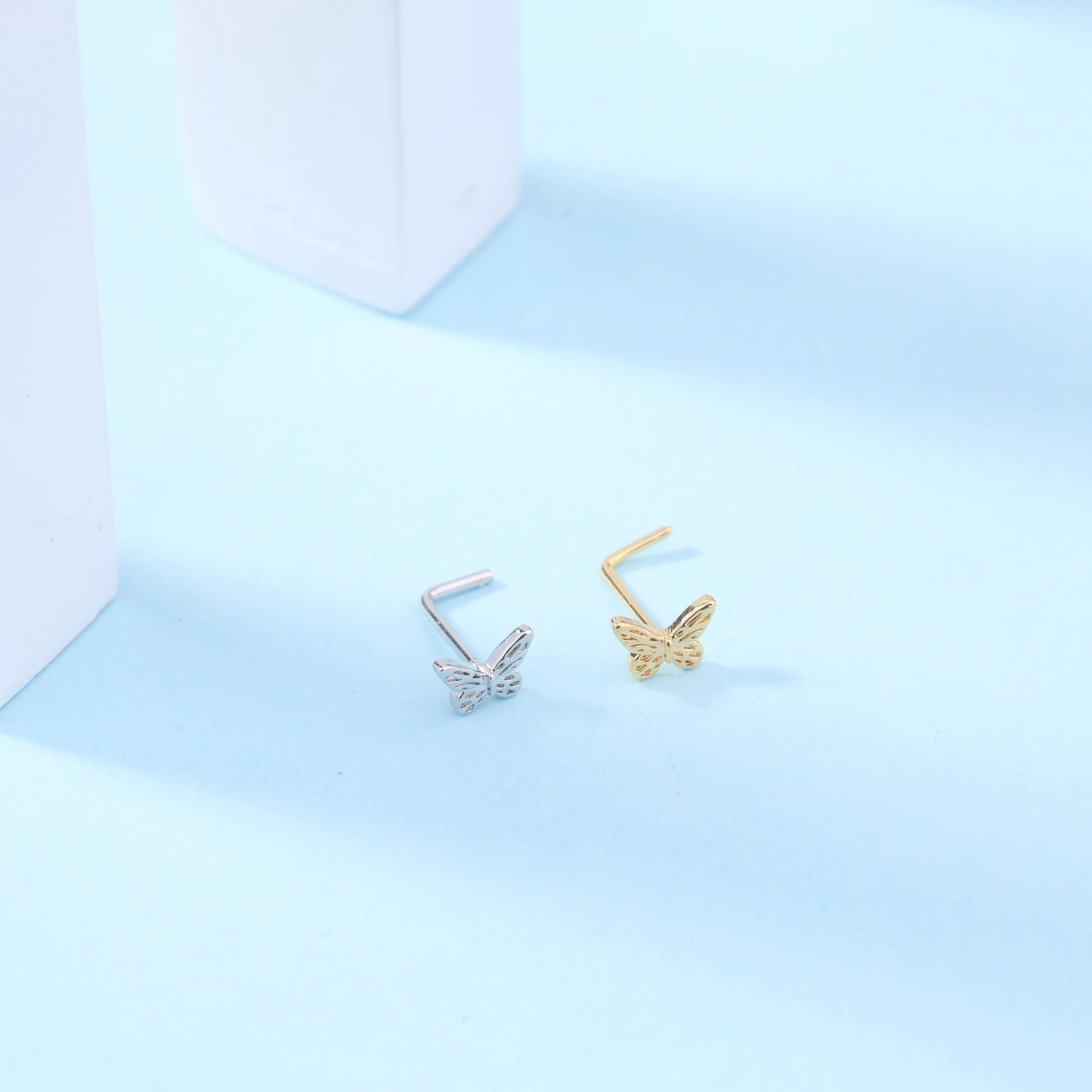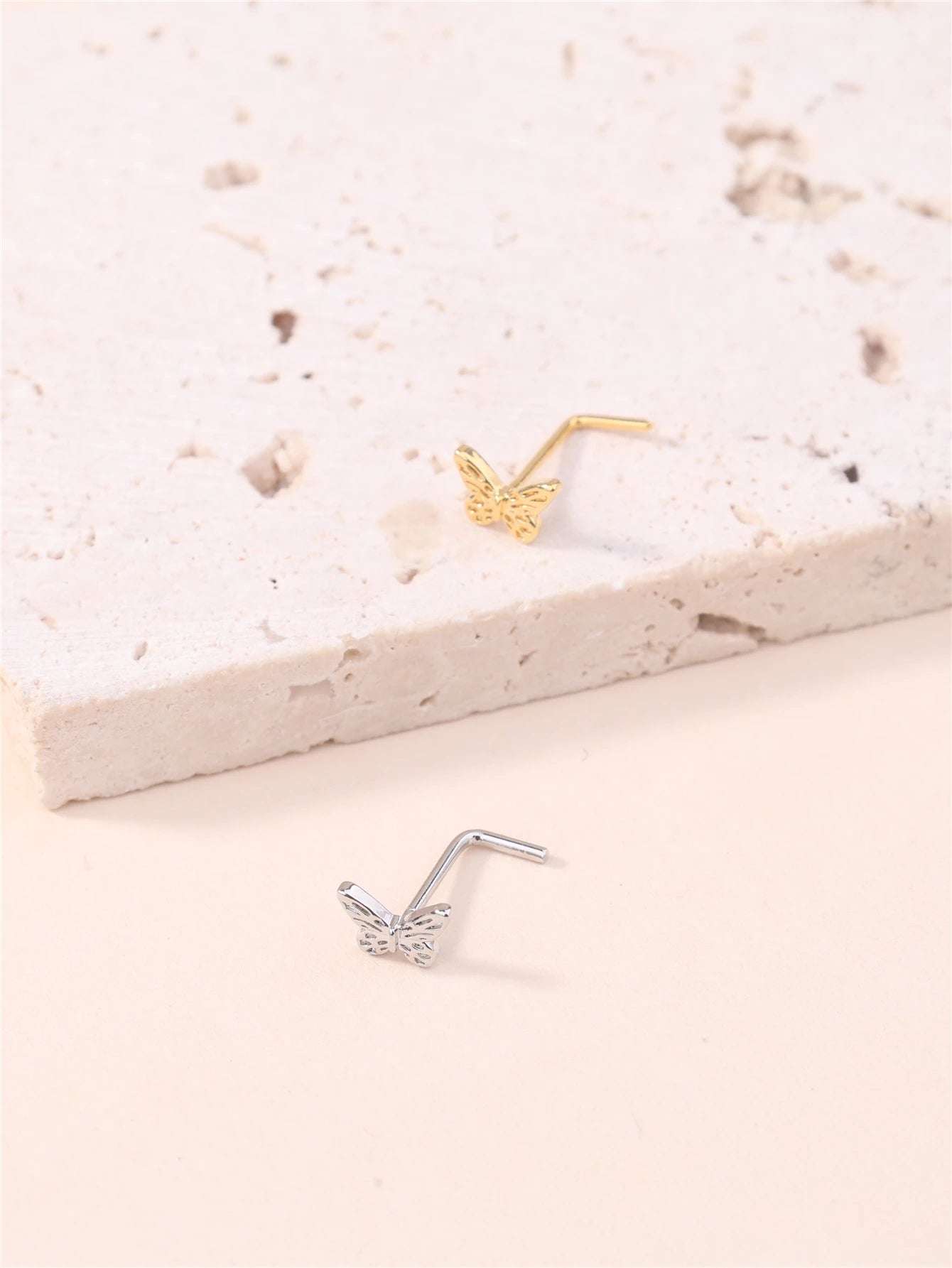Schlichte Nasenstecker in L-Form mit Mini-Schmetterling