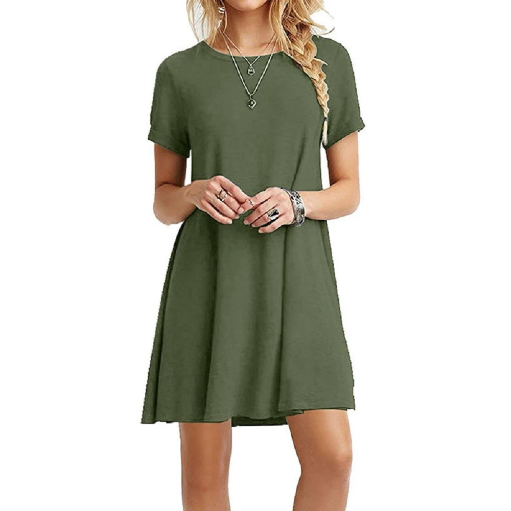 Einfarbige Minikleider mit kurzen Ärmeln und O-Ausschnitt