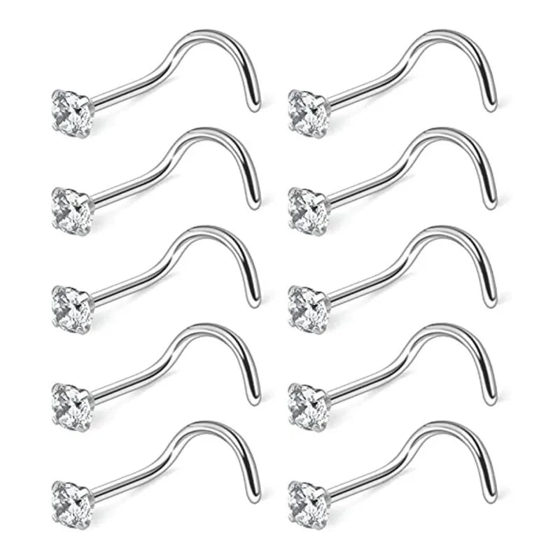 Vielseitige CZ Zirkon Nasenstecker - 10er Set