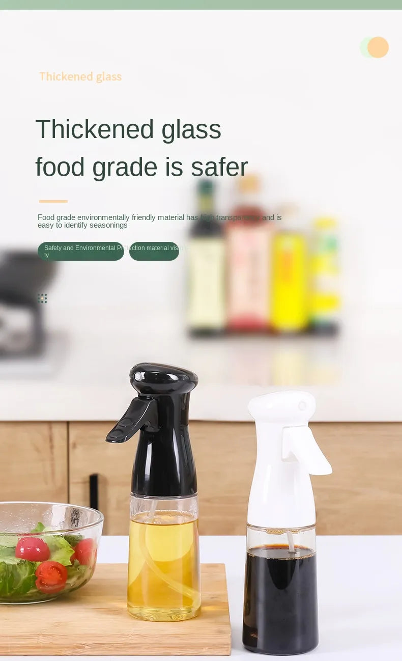 Die Ölsprühflasche ist mit einem transparenten Körper ausgestattet, der eine sichtbare Anzeige des Ölvolumens ermöglicht.
