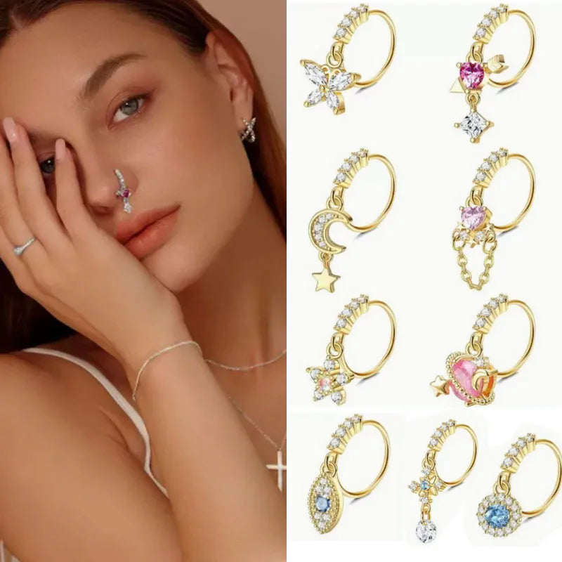 Damen 1 Stück baumelnde Nasenringe mit Schmetterlingsauge