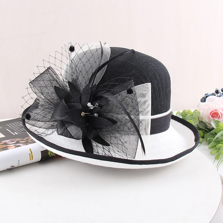 Warme Winter-Hochzeitsmützen mit großer Krempe und Blumenmuster für Damen