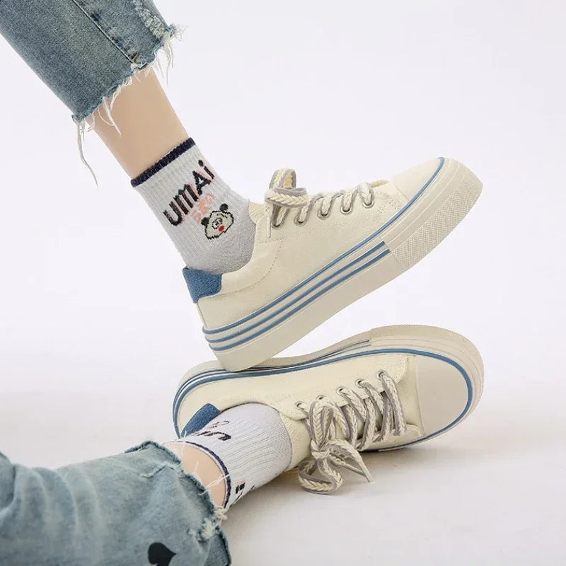 Damen-Sport-Sneaker aus Canvas mit Schnürung und dicker Sohle