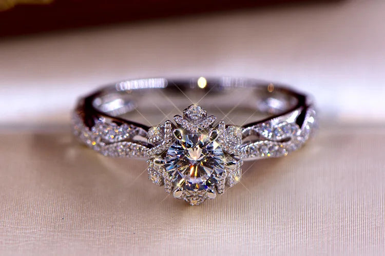 Damen Ring mit rundem Blumenkristall