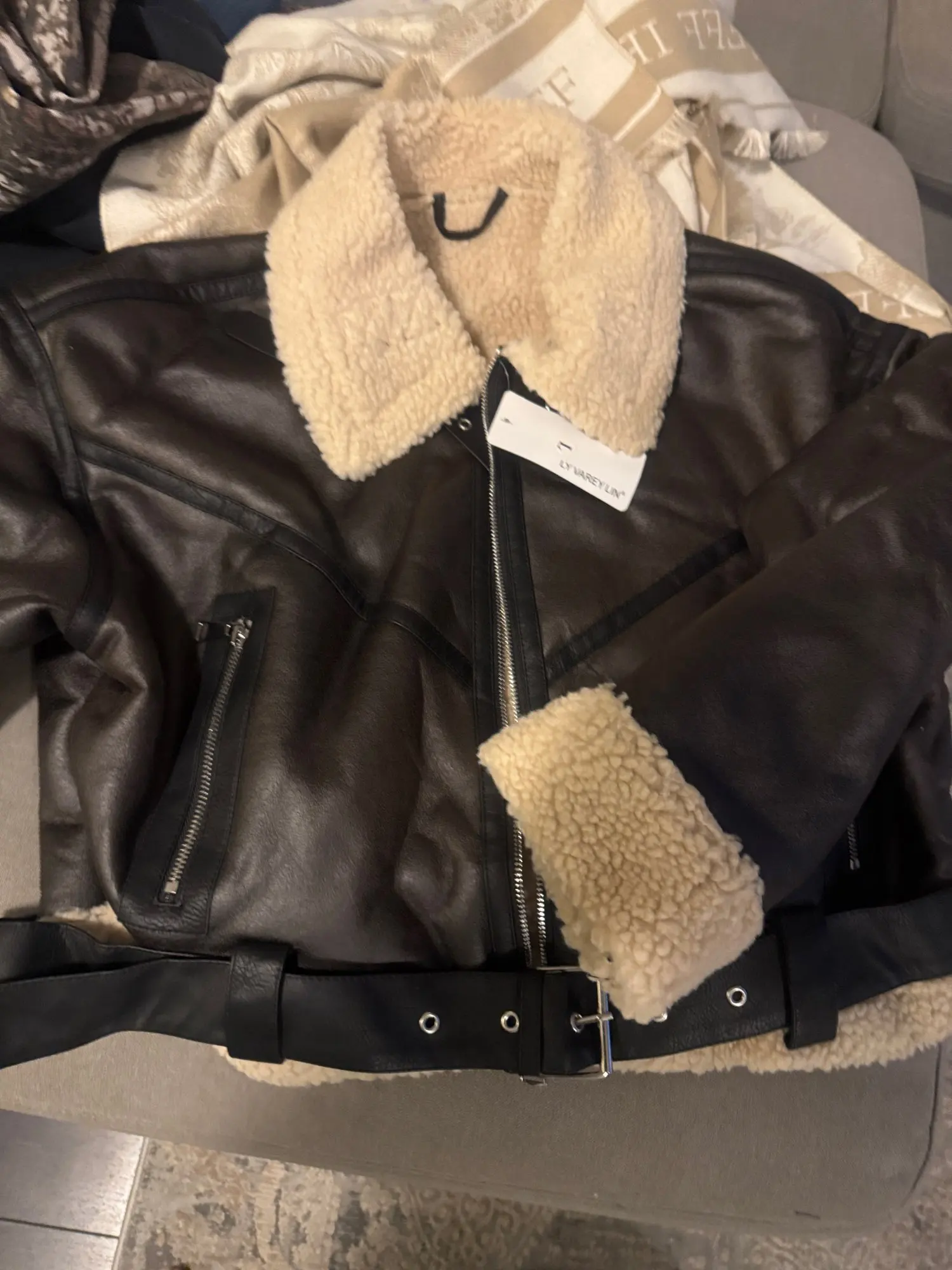 Damen Kunstlamm Dicke warme Lederpelz Kurze Jacken