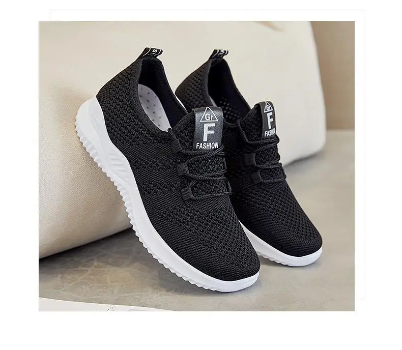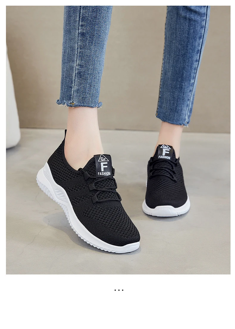 Flache, atmungsaktive Damen-Sportschuhe mit Schnürung und weicher Sohle aus Mesh