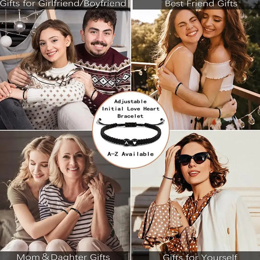 Bracelets couple tissés en forme de coeur noir & blanc personnalisables