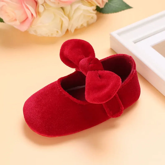 Chaussures de princesse de Noël rouge en velours pour nouveau-né 0-18 mois