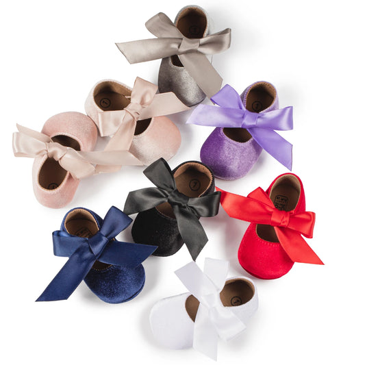 Chaussures en cuir avec nœud pour bébé fille