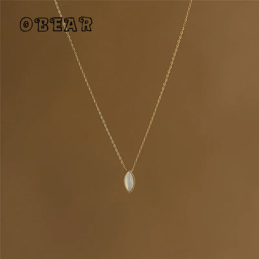 Collier à pendentif ovale en acier inoxydable plaqué or