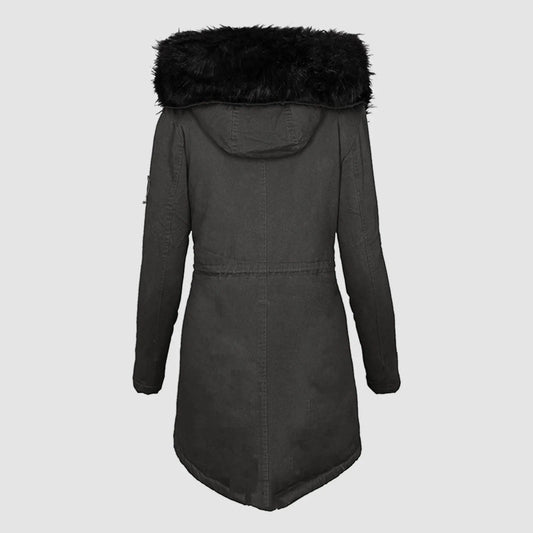 Manteau d'hiver en fourrure duveteuse à col en V pour femme