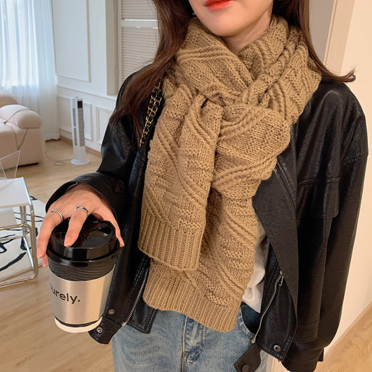 Écharpes en laine pour femmes, couleur unie, tricotées, hiver