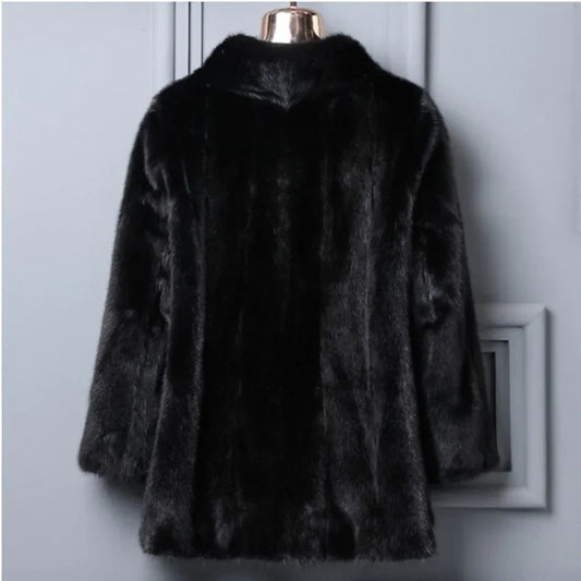 Manteau d'hiver en fourrure duveteuse à col en V pour femme