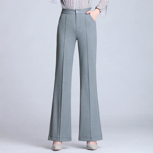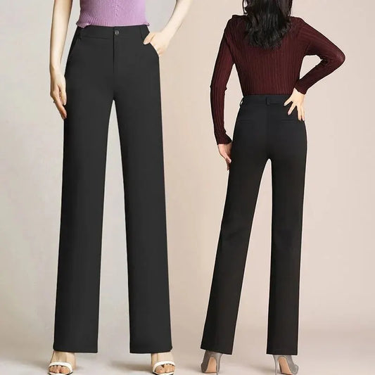 Pantalon droit de bureau à carreaux taille haute pour femmes