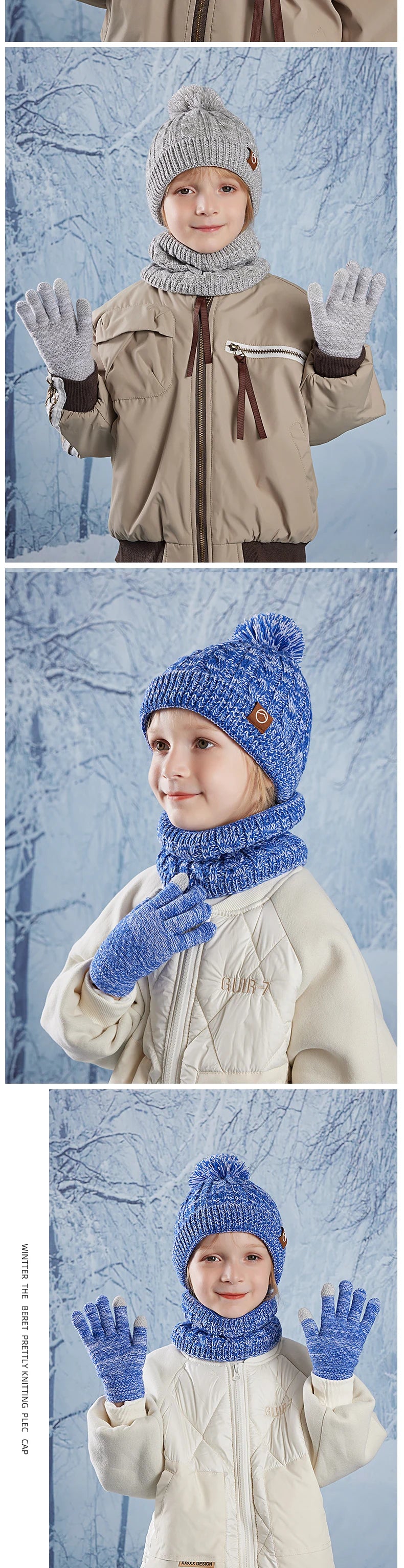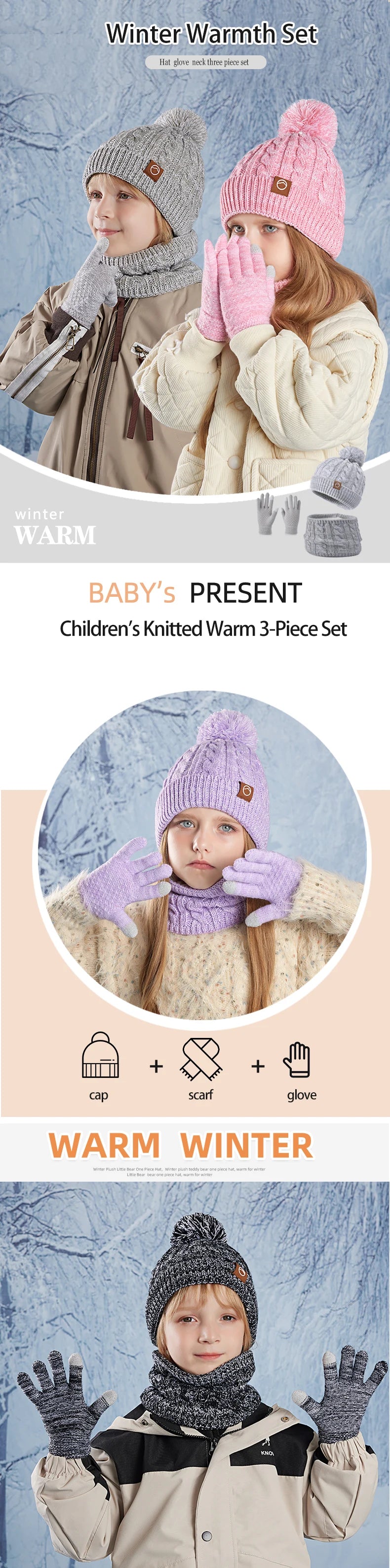 Bonnet chaud d'hiver, 3 pièces, écharpe longue