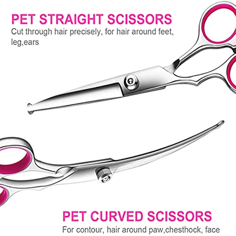 Ensemble de ciseaux de toilettage pour chiens droits et courbes en acier inoxydable
