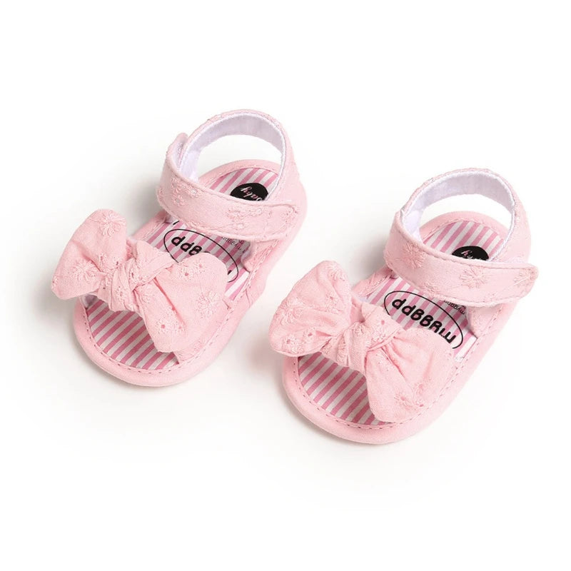 Sandales plates respirantes à semelle souple pour bébé fille avec nœud