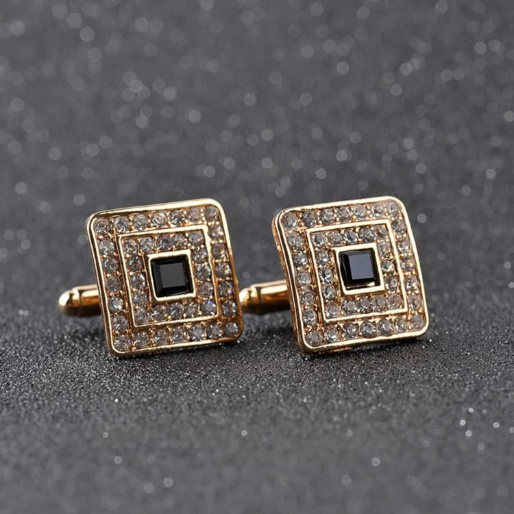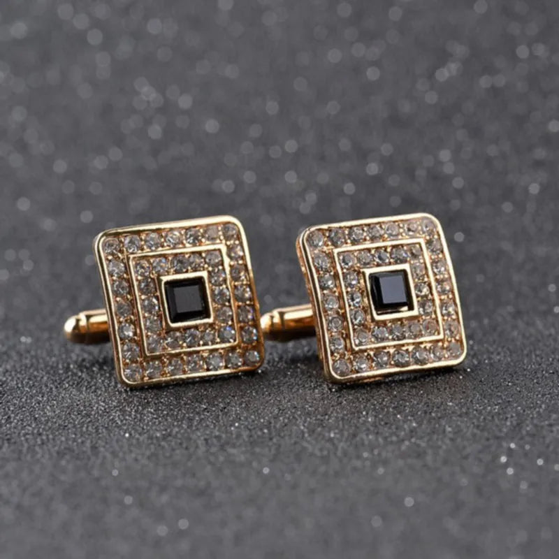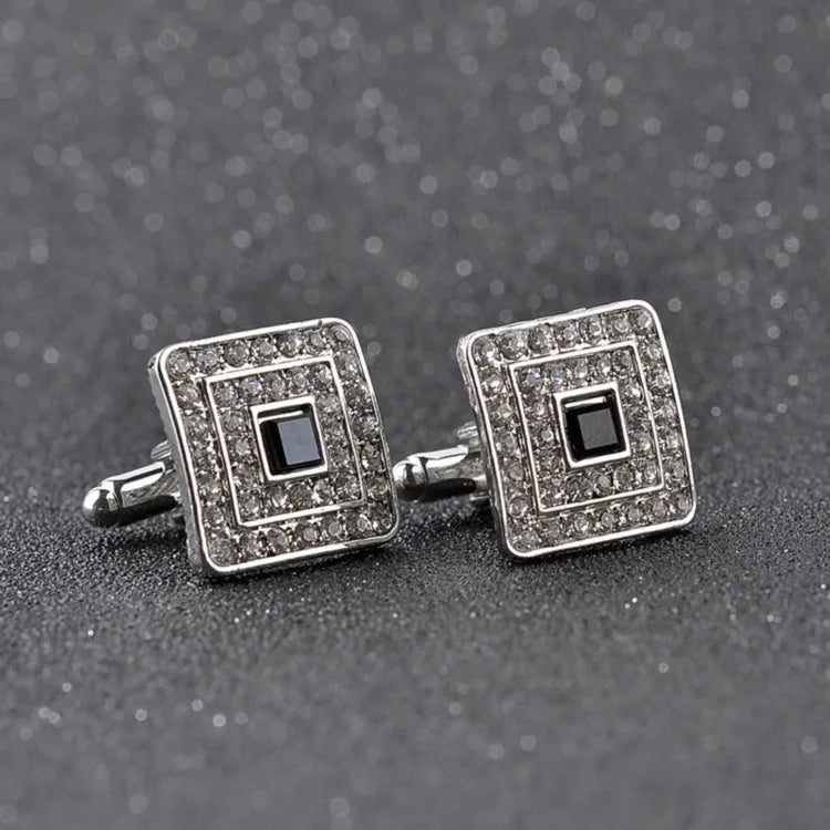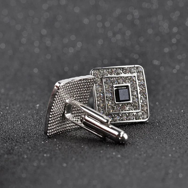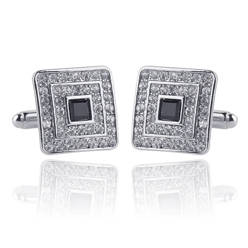 Boutons de manchette carrés en strass exquis pour hommes élégants
