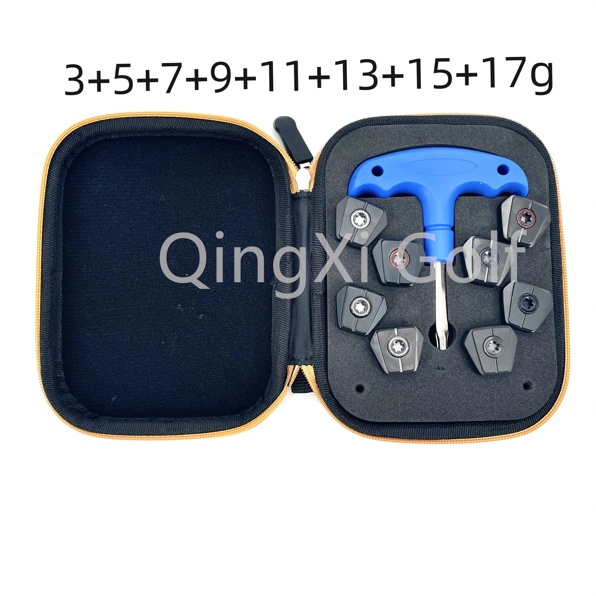 - TSi2 un ensemble de poids : le boîtier à vis est livré avec 8 pièces (3 g + 5 g + 7 g + 9 g + 11 g + 13 g + 15 g + 17 g) une par poids, une clé et un étui de rangement.