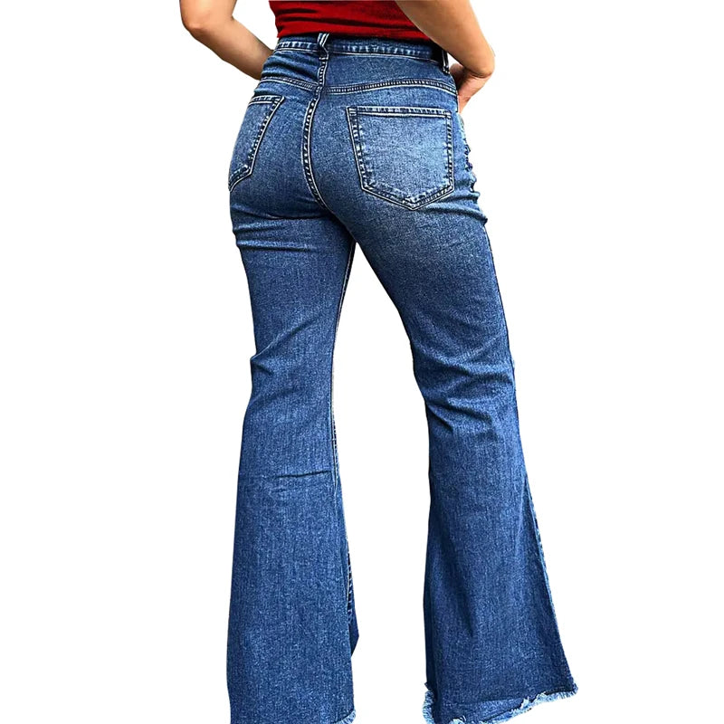 Denim évasé pour femme - Pantalon à jambes larges à fond cloche