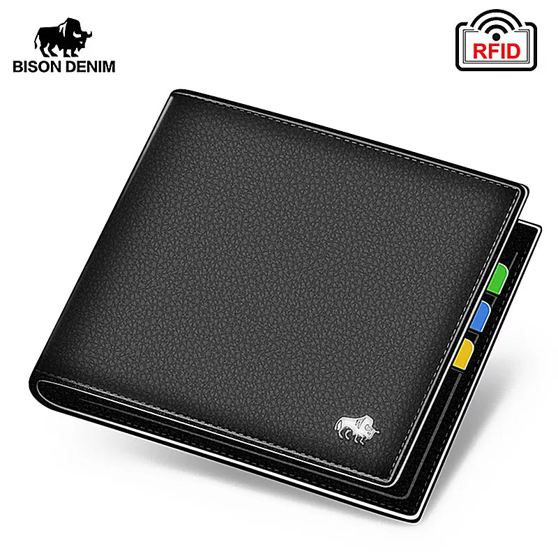 Portefeuille à deux volets RFID en cuir véritable pour hommes avec porte-monnaie à fermeture éclair
