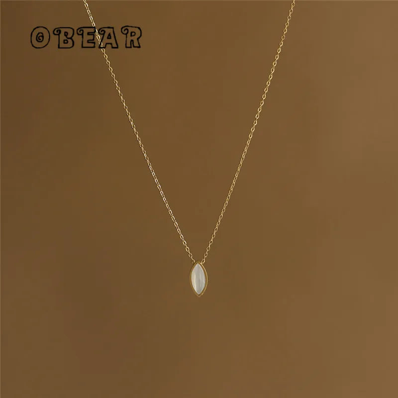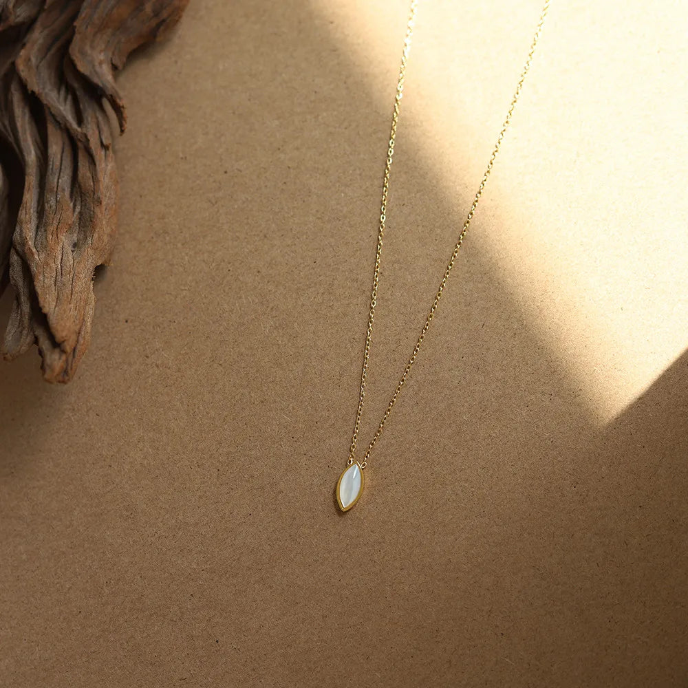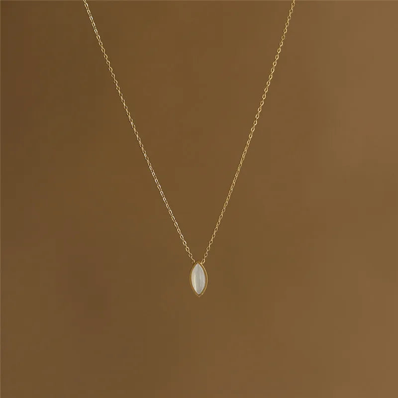 Collier à pendentif ovale en acier inoxydable plaqué or