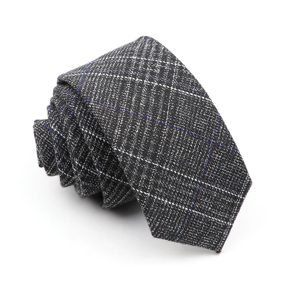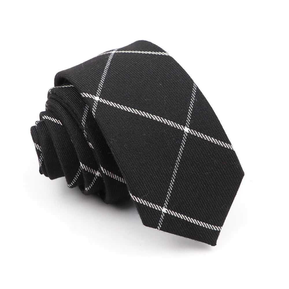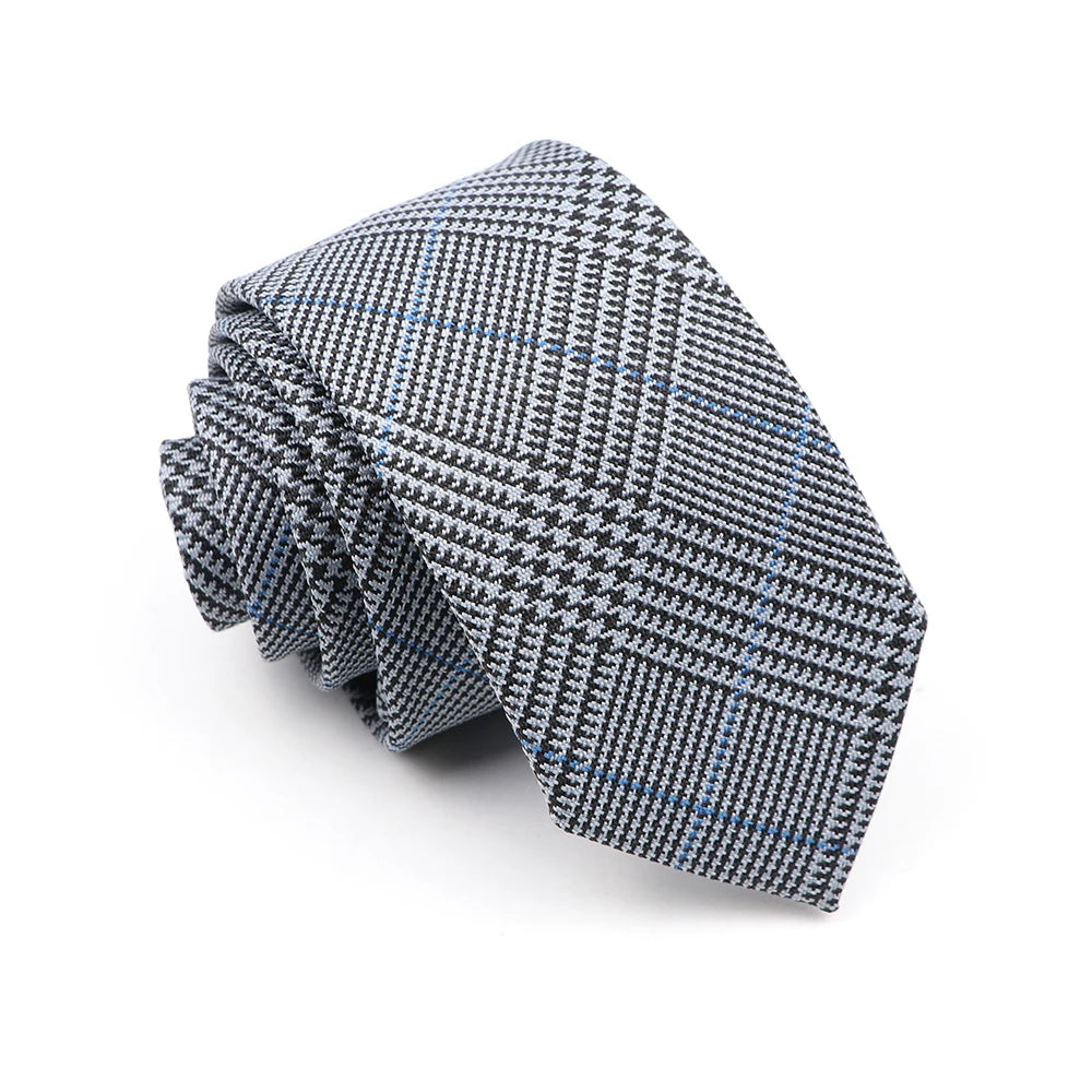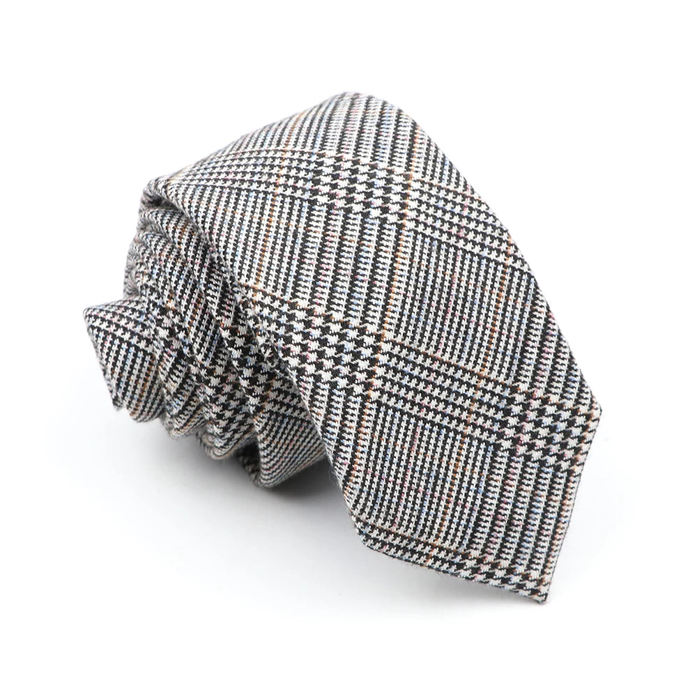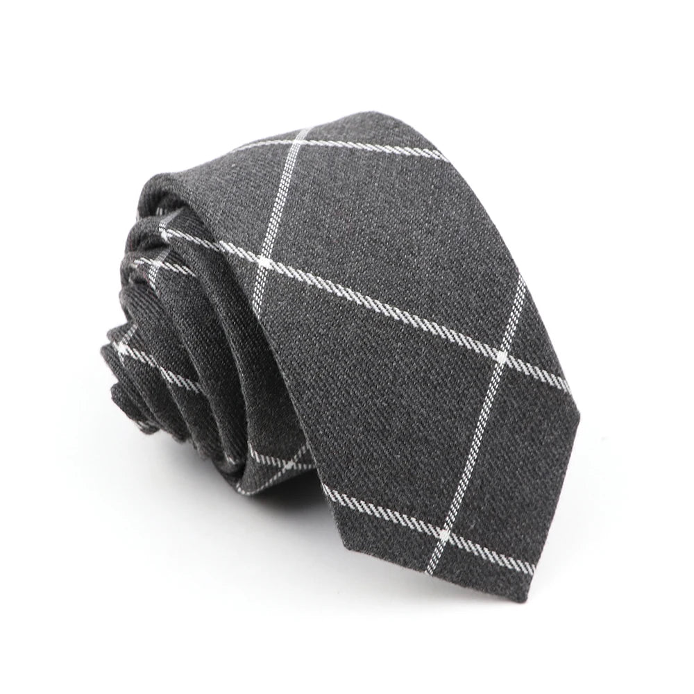 Cravate étroite en coton à carreaux gris et noir pour hommes