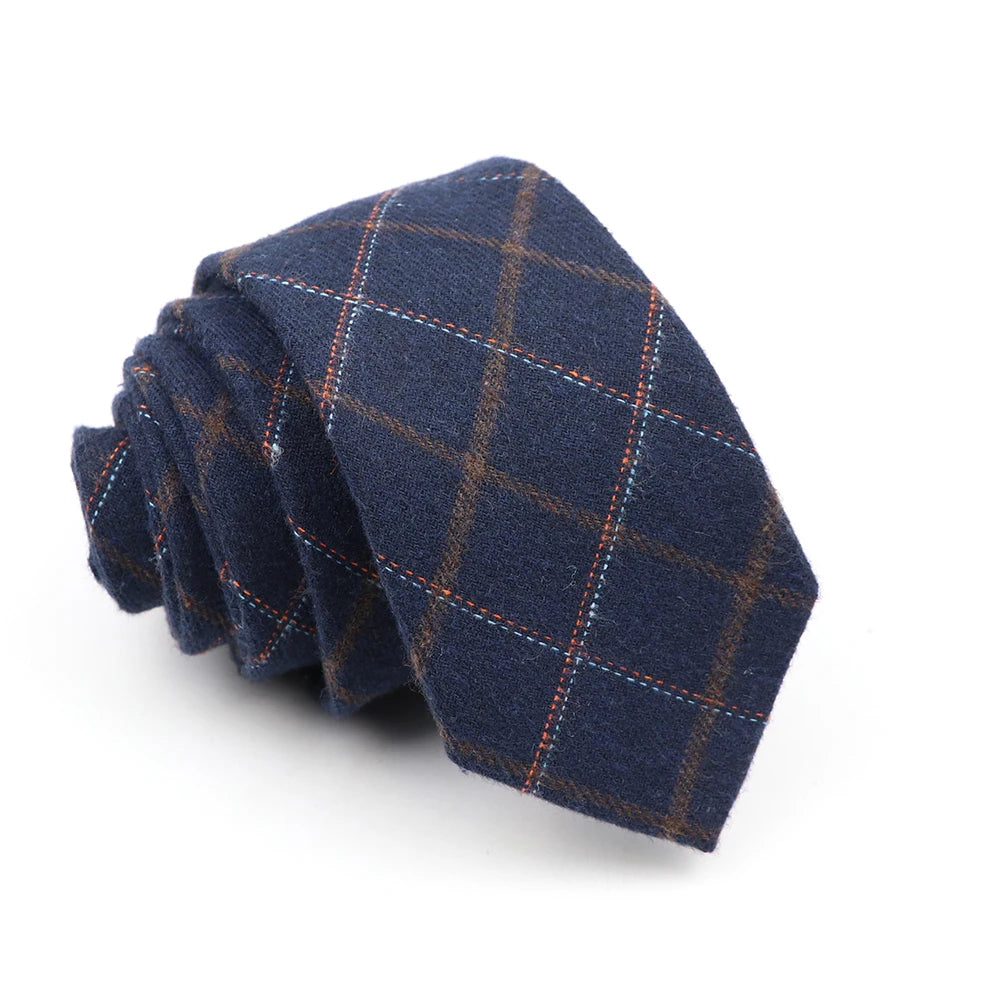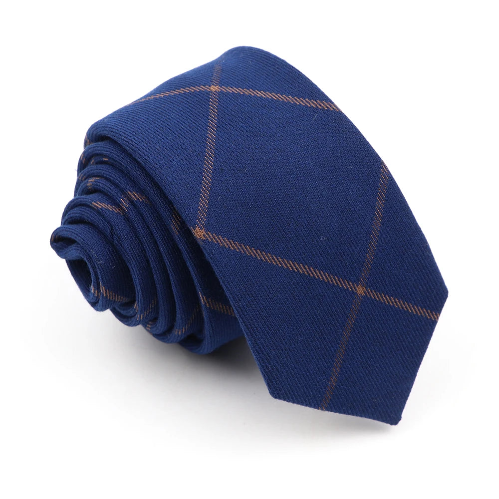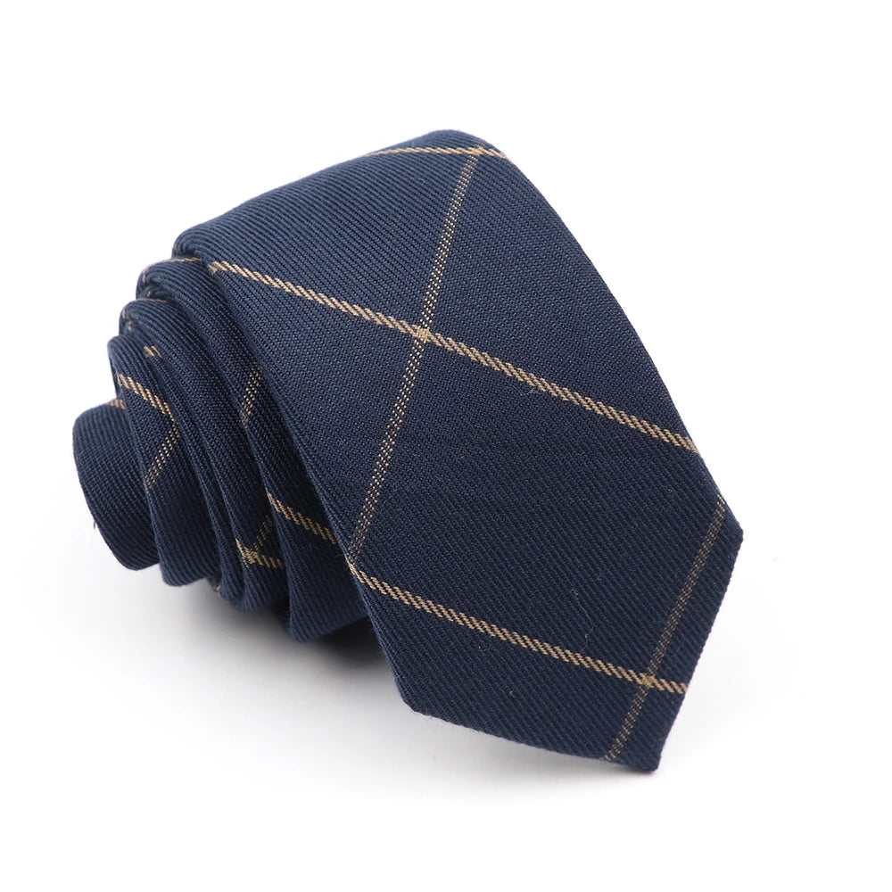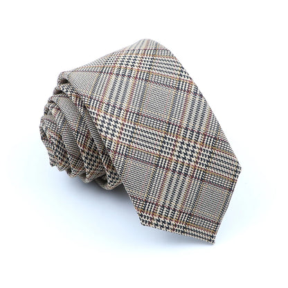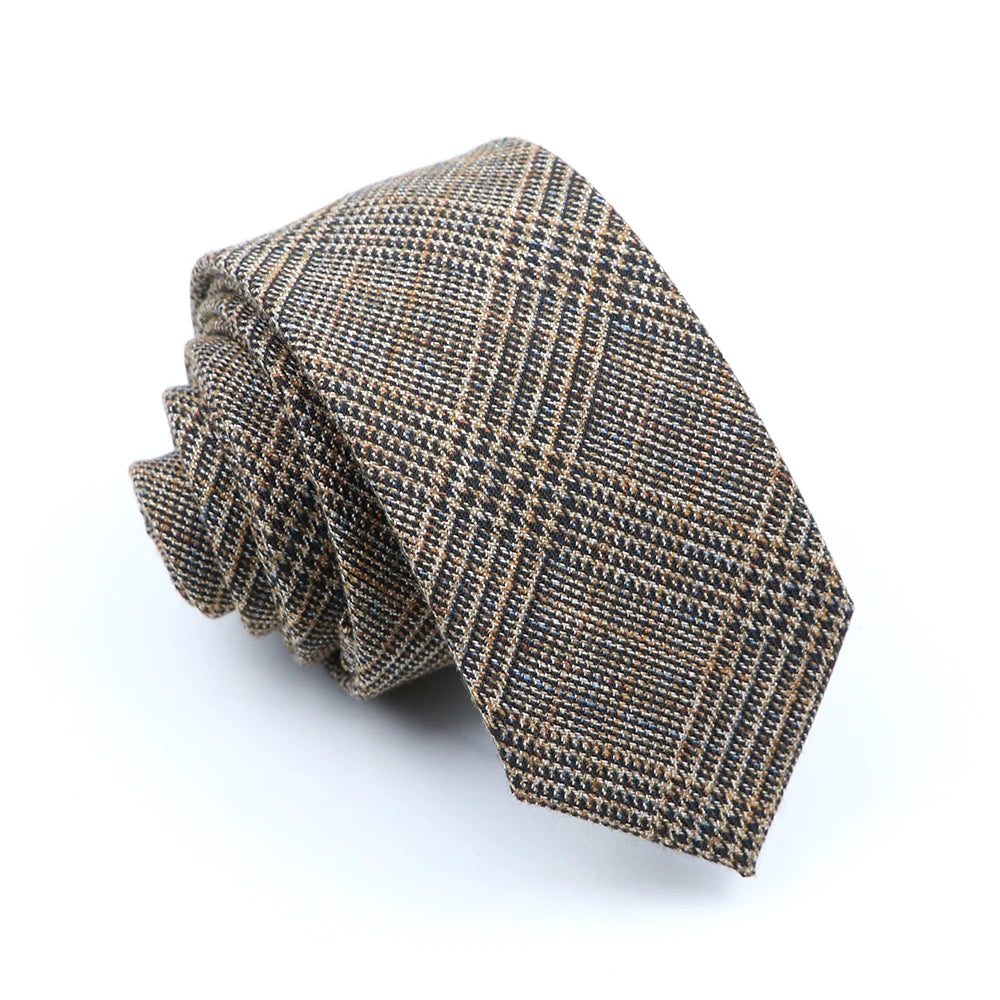Cravate étroite en coton à carreaux gris et noir pour hommes