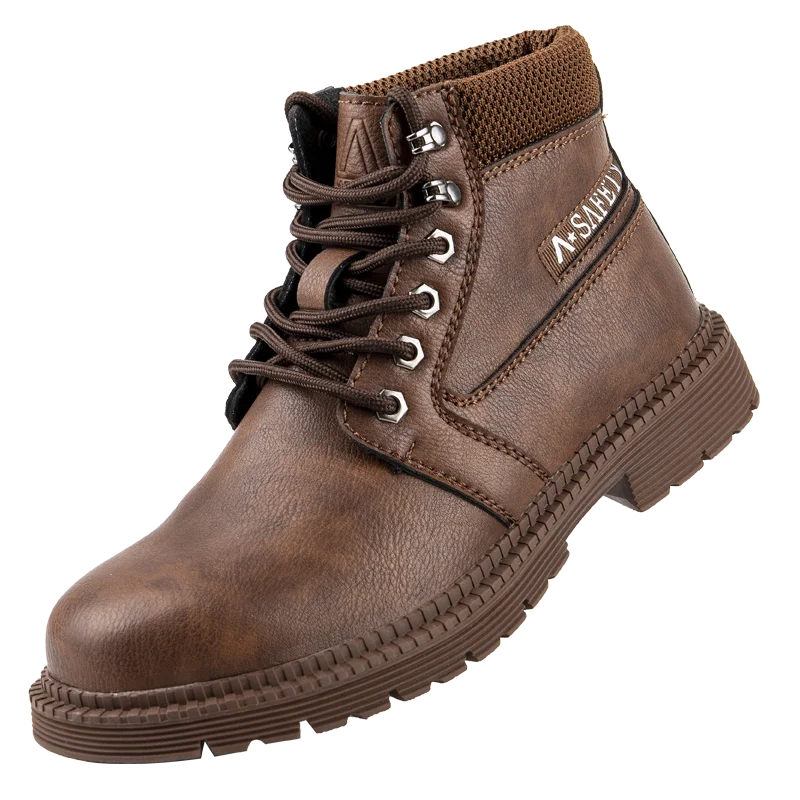 Chaussures imperméables pour hommes, bottes en cuir à tête en acier, chaussures de construction indestructibles marron
