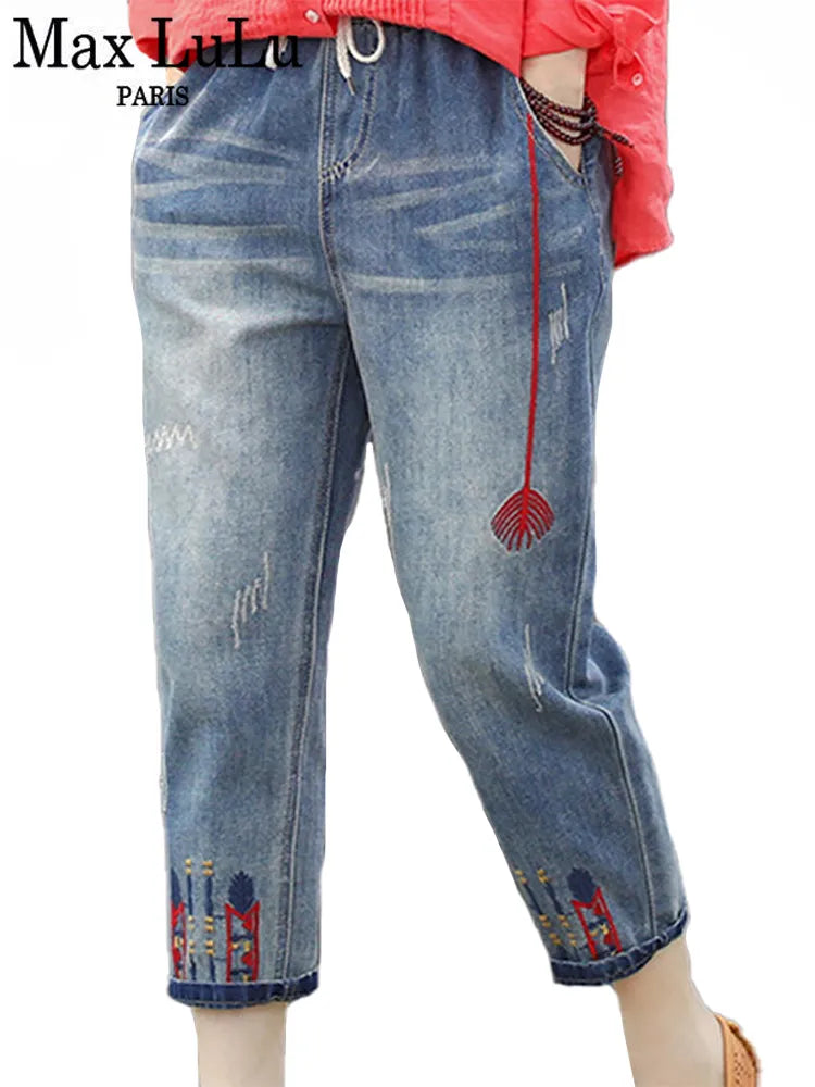 Jeans déchirés pour femmes - Denim brodé décontracté pour femmes