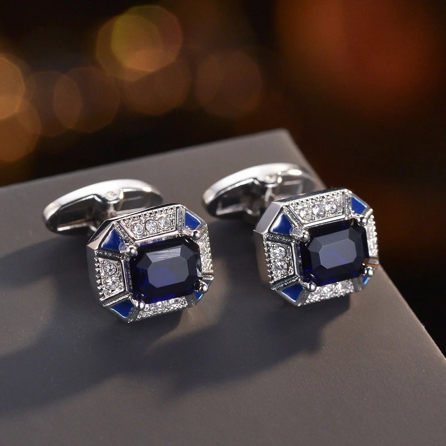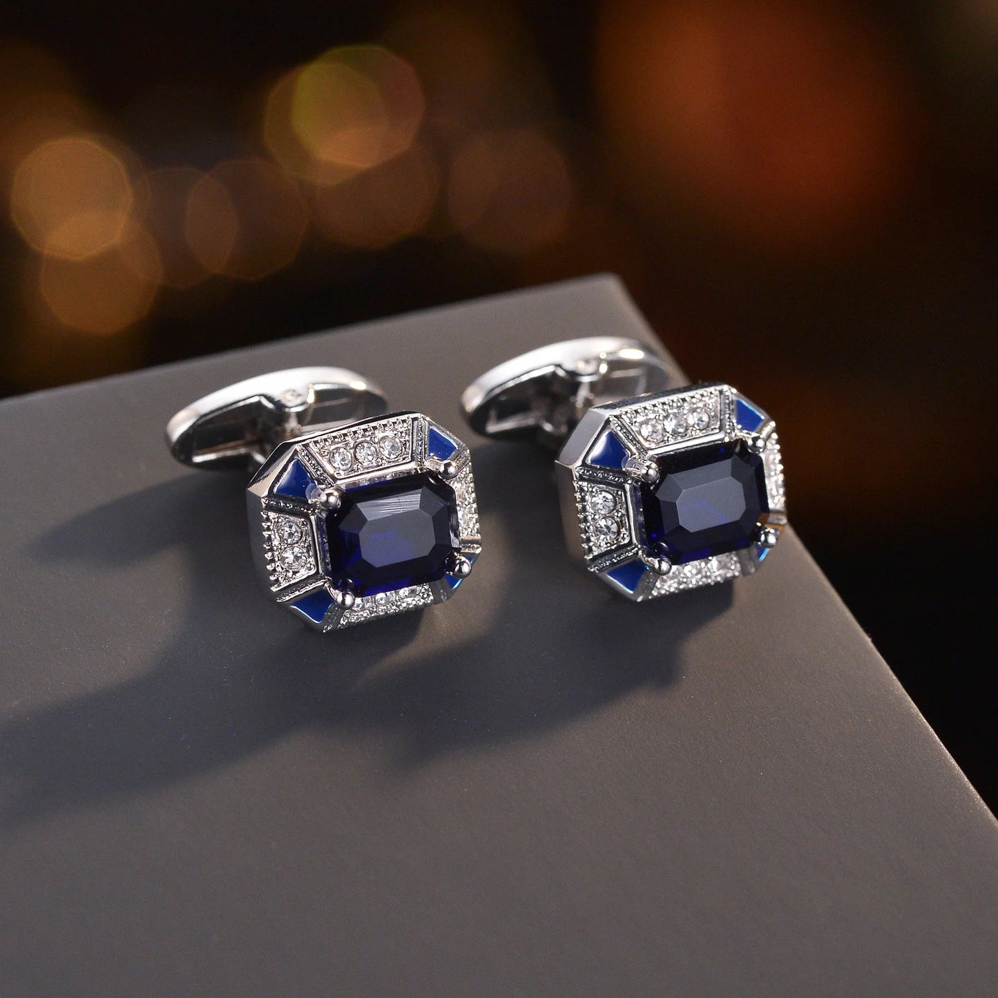Boutons de manchette en cristal et pierre bleue pour hommes